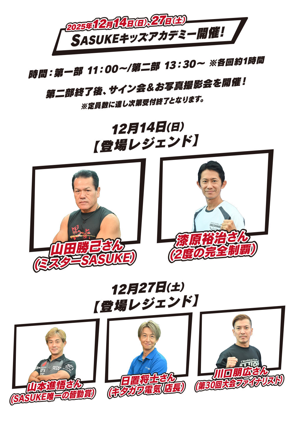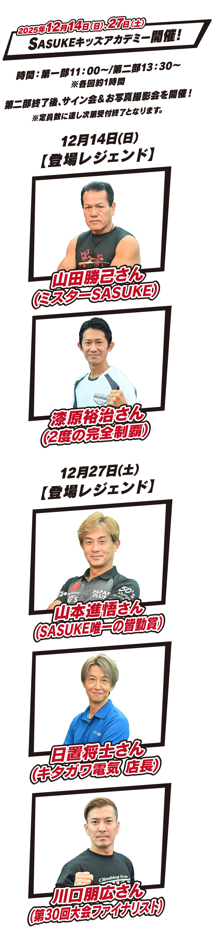 2024.12.5 12/22(日)と12/28(土)のキッズアカデミーの参加レジェンドが決定しました!
