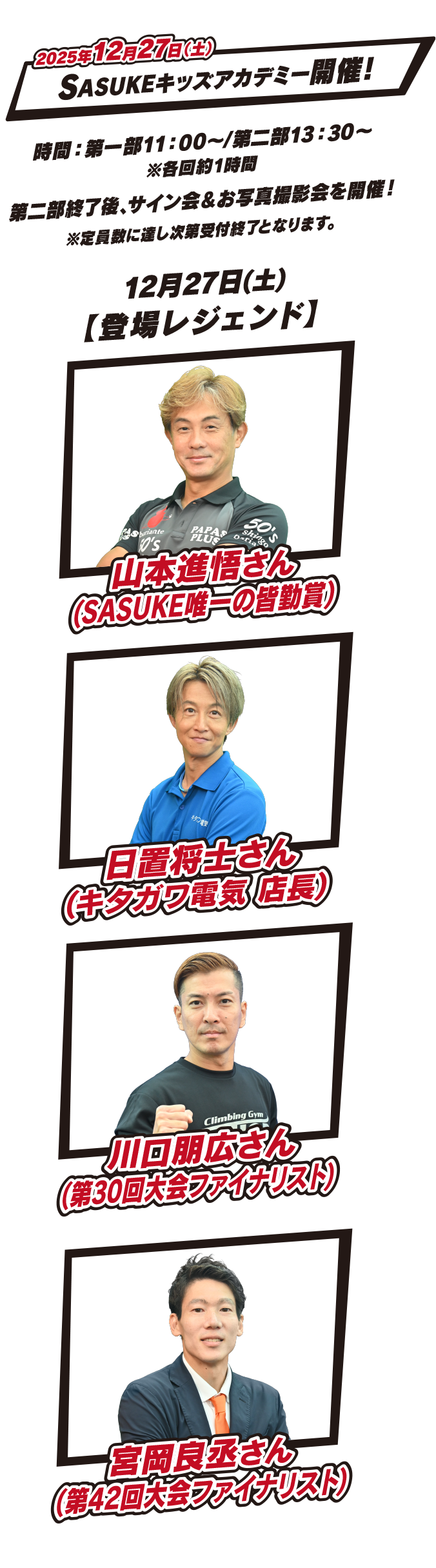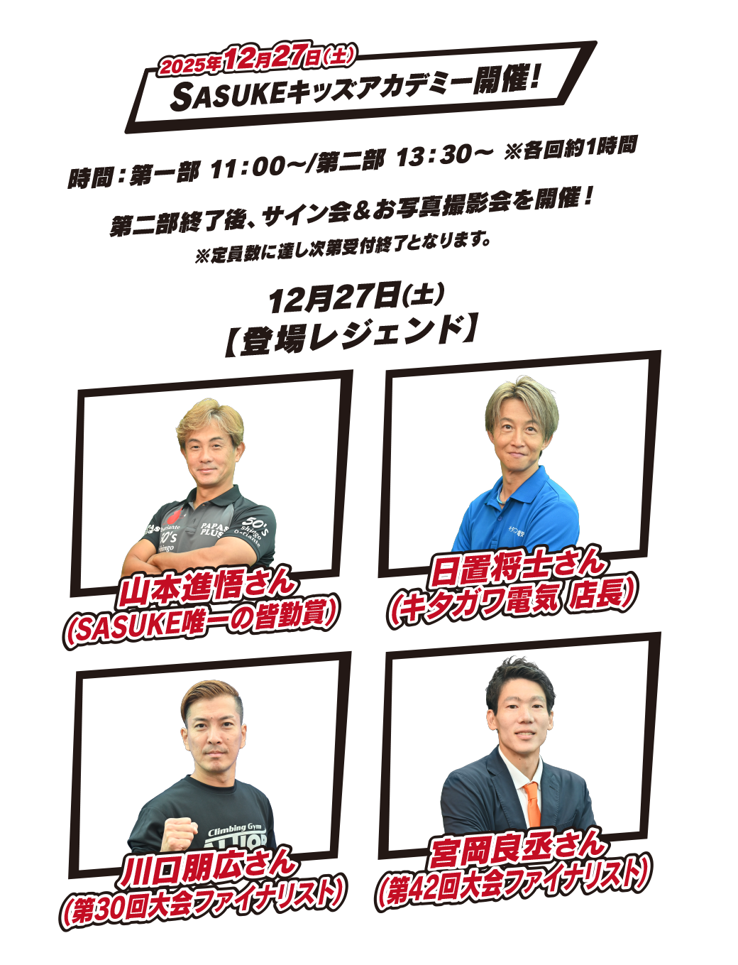2024.12.5 12/22(日)と12/28(土)のキッズアカデミーの参加レジェンドが決定しました!