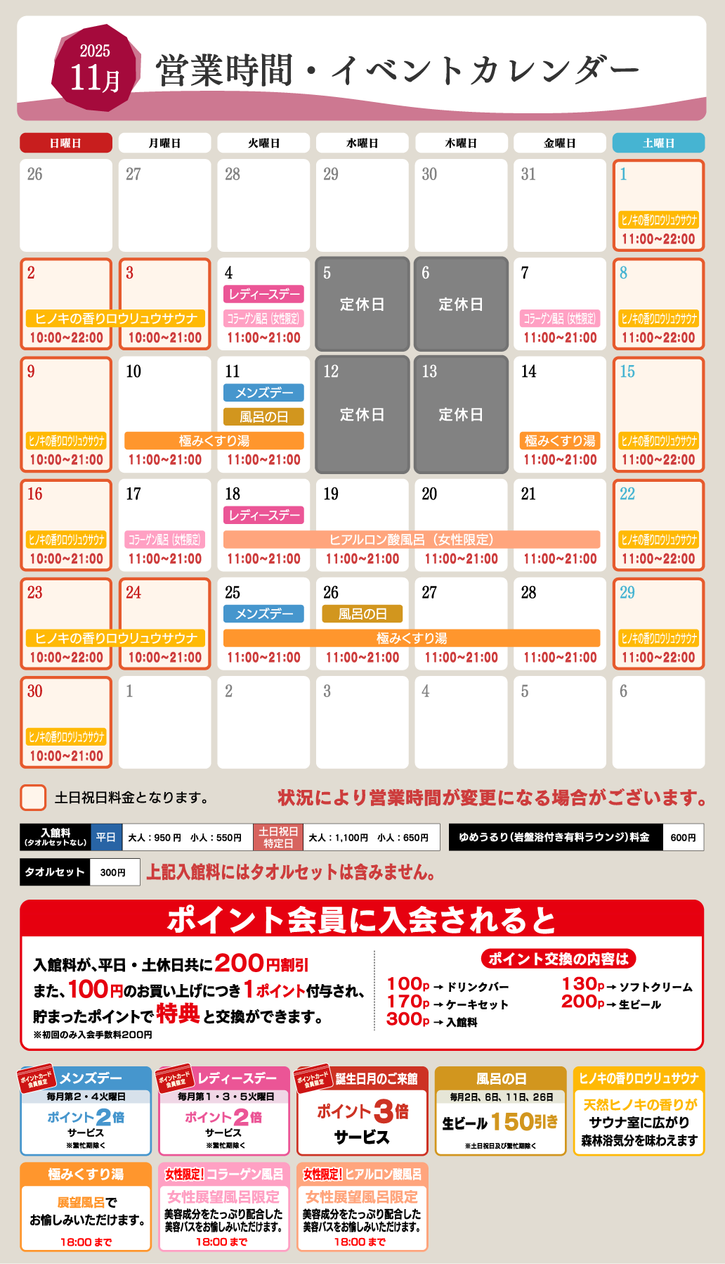 2025年11月の営業カレンダー
